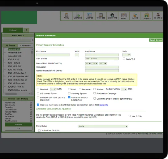 Opulence's cloud-based software allows you to prepare and file tax returns from any device, providing flexibility and convenience to both you and your customer.
